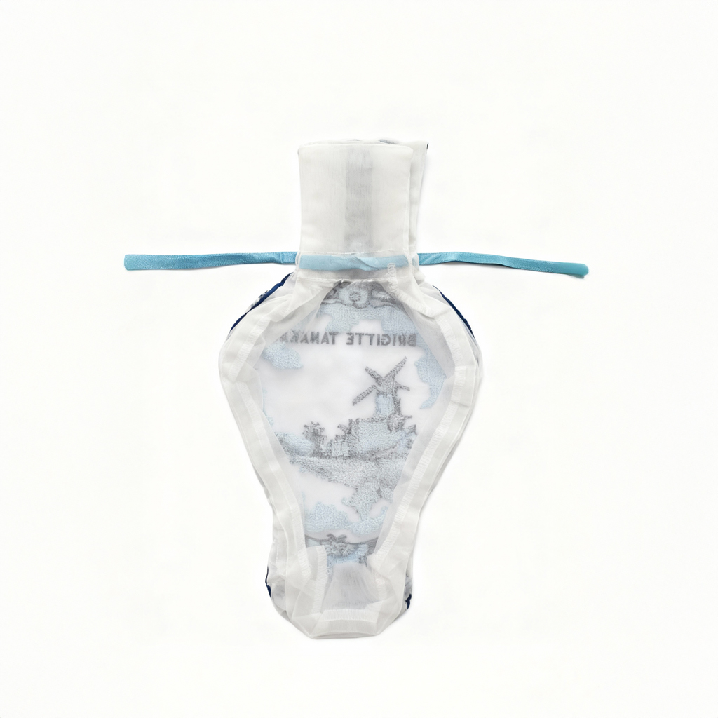 Brigitte Tanaka’s embroidered organza bags & pouches combine contemporary design with vintage charm. Light, elegant, and durable, they poetically reinterpret everyday objects, offering a refined and eco-friendly alternative to commercial plastic bags.